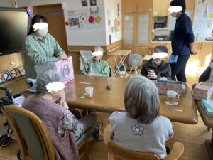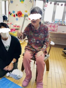 待機しているご利用者やスタッフに見守れながら頑張って倒しましょう。