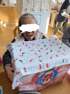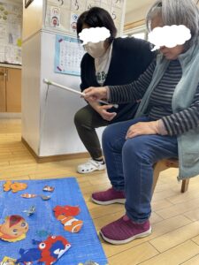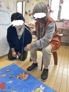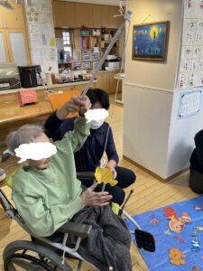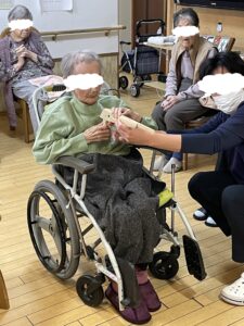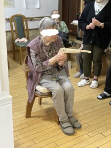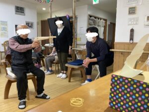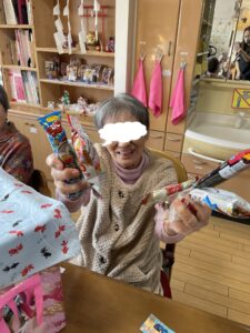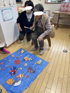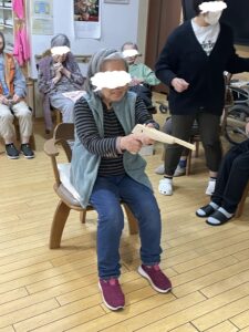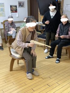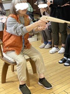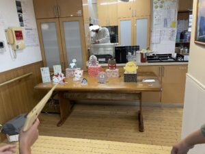 待機しているご利用者やスタッフに見守れながら頑張って倒しましょう。